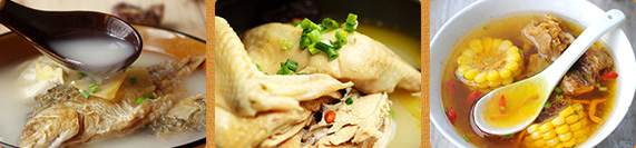 滋补老鸽汤、胡萝卜玉米煲排骨、冬瓜薏米排骨汤、南北杏菜干益肺汤、栗子煲鸡、节瓜排骨汤、广东天麻鱼头靓汤、老火水鸭汤、莲藕排骨汤、黄花菜虫草炖鸡汤、五指毛桃益生汤、排骨萝卜汤、鲫鱼木瓜汤、当归党参乌鸡汤等(16道)