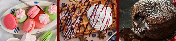 焦糖布丁、巧克力慕斯、林茨塔、马卡龙、可丽饼、迷你什锦水果塔、红丝绒蛋糕、蒙布朗、玛德琳、闪电泡芙、蛋白饼、巧克力熔岩蛋糕、苹果塔、柠香磅蛋糕、兰斯玫瑰饼干、提拉米苏、司康、法式布朗尼、蛋白柠檬派、舒芙蕾、(20道)